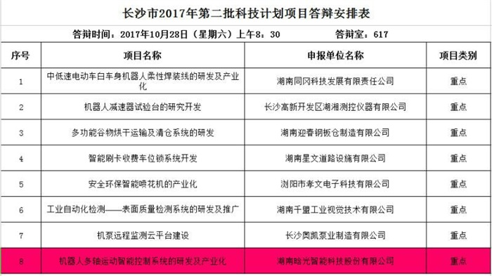 2017年10月28日,晗光智能組團參加了長沙市2017年第二批科技計劃項目答辯。項目的技術創新性和產品的高性價比受到了評委專家們的一致好評。